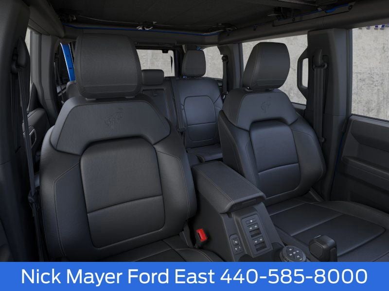 Nick Mayer Ford East Wickliffe is proud to offer this outstanding 2025 Ford Bronco in Blue Metallic This vehicle has been thoroughly inspected, ready to take home, and comes with the following features; Equipment Group 332A Mid Package (2-Door Intelligent Access w/Lock/Unlock, Ambient Footwell Lighting, Connected Navigation, Dr & Pass Illuminated Sliding Visor Vanity Mirrors, Dual Smart Charging USB Ports, Dual-Zone Electronic Automatic Temperature Control, Front Row Heated Seats, Power Outlet - Back Side of Center Floor Console, and Rear Parking Sensors), 4-Wheel Disc Brakes, 4.7 Axle Ratio, 7 Speakers, ABS brakes, Air Conditioning, Alloy wheels, AM/FM radio: SiriusXM with 360L, AM/FM Stereo, Auto High-Beam Headlamps, Auto High-beam Headlights, Auto-dimming Rear-View mirror, BLIS Blind Spot Information System, Brake assist, Carbonized Gray Molded-In-Color Hard Top, Compass, Delay-off headlights, Door Storage Bags, Driver door bin, Driver vanity mirror, Dual front impact airbags, Dual front side impact airbags, Electronic Stability Control, Emergency communication system: 911 Assist, Exterior Parking Camera Rear, Ford Performance Heavy-Duty Modular Front Bumper, Front anti-roll bar, Front Bucket Seats, Front Center Armrest, Front fog lights, Front reading lights, Front wheel independent suspension, Fully automatic headlights, Heated door mirrors, Heated front seats, Heated steering wheel, Illuminated entry, Integrated roll-over protection, Internet access capable: FordPass Connect, Lane-Keeping System, Leather Shift Knob, Low tire pressure warning, Marine Grade Vinyl Heated Bucket Seats, Occupant sensing airbag, Outside temperature display, Overhead airbag, Overhead console, Panic alarm, Passenger door bin, Passenger vanity mirror, Power door mirrors, Power steering, Power windows, Pre-Collision Assist w/Automatic Emergency Braking, Radio data system, Rear-View Camera, Rear-Window Defroster & Washer, Remote keyless entry, Security system, SiriusXM w/360L, Speed control, Split folding rear seat, Steering wheel mounted audio controls, SYNC 4, Tachometer, Telescoping steering wheel, Tilt steering wheel, Traction control, Trip computer, Variably intermittent wipers, Voltmeter, and Wheels: 17 Carbonized Gray-Painted Aluminum.