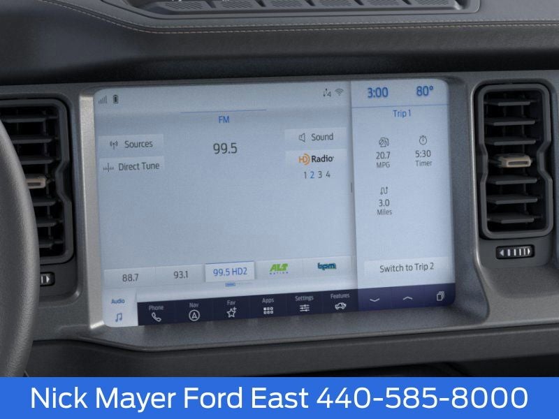 Nick Mayer Ford East Wickliffe is proud to offer this handsome 2025 Ford Bronco in Gray Metallic This vehicle has been thoroughly inspected, ready to take home, and comes with the following features; Equipment Group 332A Mid Package (2-Door Intelligent Access w/Lock/Unlock, Ambient Footwell Lighting, Connected Navigation, Dr & Pass Illuminated Sliding Visor Vanity Mirrors, Dual Smart Charging USB Ports, Dual-Zone Electronic Automatic Temperature Control, Front Row Heated Seats, Power Outlet - Back Side of Center Floor Console, and Rear Parking Sensors), Sasquatch Package (High Clearance Fender Flares, High Clearance Suspension, Position-Sensitive Bilstein Shock Absorbers, and Wheels: 17 Carbonized Gray Painted Aluminum), 4-Wheel Disc Brakes, 7 Speakers, ABS brakes, Air Conditioning, Alloy wheels, AM/FM radio: SiriusXM with 360L, AM/FM Stereo, Auto High-Beam Headlamps, Auto High-beam Headlights, Auto-dimming Rear-View mirror, BLIS Blind Spot Information System, Brake assist, Carbonized Gray Molded-In-Color Hard Top, Compass, Delay-off headlights, Door Storage Bags, Driver door bin, Driver vanity mirror, Dual front impact airbags, Dual front side impact airbags, Electronic Stability Control, Emergency communication system: 911 Assist, Exterior Parking Camera Rear, Ford Performance Heavy-Duty Modular Front Bumper, Front anti-roll bar, Front Bucket Seats, Front Center Armrest, Front fog lights, Front reading lights, Front wheel independent suspension, Fully automatic headlights, Heated door mirrors, Heated front seats, Heated steering wheel, Illuminated entry, Integrated roll-over protection, Internet access capable: FordPass Connect, Lane-Keeping System, Leather Shift Knob, Low tire pressure warning, Marine Grade Vinyl Heated Bucket Seats, Occupant sensing airbag, Outside temperature display, Overhead airbag, Overhead console, Panic alarm, Passenger door bin, Passenger vanity mirror, Power door mirrors, Power steering, Power windows, Pre-Collision Assist w/Automatic Emergency Braking, Radio data system, Rear-View Camera, Rear-Window Defroster & Washer, Remote keyless entry, Security system, SiriusXM w/360L, Speed control, Split folding rear seat, Steering wheel mounted audio controls, SYNC 4, Tachometer, Telescoping steering wheel, Tilt steering wheel, Traction control, Trip computer, Variably intermittent wipers, Voltmeter, and Wheels: 17 Carbonized Gray-Painted Aluminum.