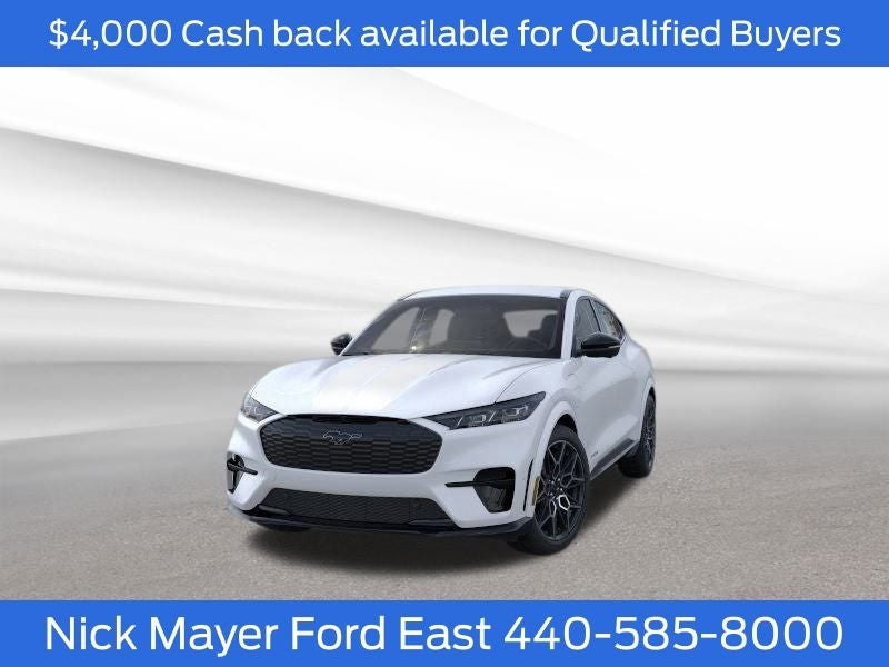 Nick Mayer Ford East Wickliffe is proud to offer this gorgeous 2025 Ford Mustang Mach-E in White Metallic This vehicle has been thoroughly inspected, ready to take home, and comes with the following features; 10 Speakers, 4-Wheel Disc Brakes, ABS brakes, Adaptive suspension, Air Conditioning, Alloy wheels, AM/FM radio: SiriusXM with 360L, Apple CarPlay/Android Auto, Auto High-beam Headlights, Auto-dimming Rear-View mirror, Automatic temperature control, Brake assist, Bumpers: body-color, Compass, Delay-off headlights, Driver door bin, Driver vanity mirror, Dual front impact airbags, Dual front side impact airbags, Electronic Stability Control, Emergency communication system: 911 Assist, Exterior Parking Camera Rear, Four wheel independent suspension, Front anti-roll bar, Front Bucket Seats, Front Center Armrest, Front dual zone A/C, Front reading lights, Fully automatic headlights, Garage door transmitter, Heated door mirrors, Heated front seats, Heated Perforated ActiveX Performance Seats, Heated steering wheel, Illuminated entry, Internet access capable: FordPass Connect, Knee airbag, Low tire pressure warning, Memory seat, Navigation system: Connected Navigation, Occupant sensing airbag, Outside temperature display, Overhead airbag, Overhead console, Panic alarm, Passenger door bin, Passenger vanity mirror, Power door mirrors, Power driver seat, Power Liftgate, Power passenger seat, Power steering, Power windows, Radio data system, Radio: B&O Sound System by Bang & Olufsen, Rain sensing wipers, Rear anti-roll bar, Rear seat center armrest, Rear side impact airbag, Rear window defroster, Rear window wiper, Remote keyless entry, Security system, SiriusXM w/360L, Speed control, Speed-sensing steering, Speed-Sensitive Wipers, Split folding rear seat, Spoiler, Steering wheel mounted audio controls, SYNC 4A w/Enhanced Voice Recognition, Telescoping steering wheel, Tilt steering wheel, Traction control, Trip computer, Turn signal indicator mirrors, Variably intermittent wipers, and Wheels: 20 Monochromatic High Gloss Black-Painted.