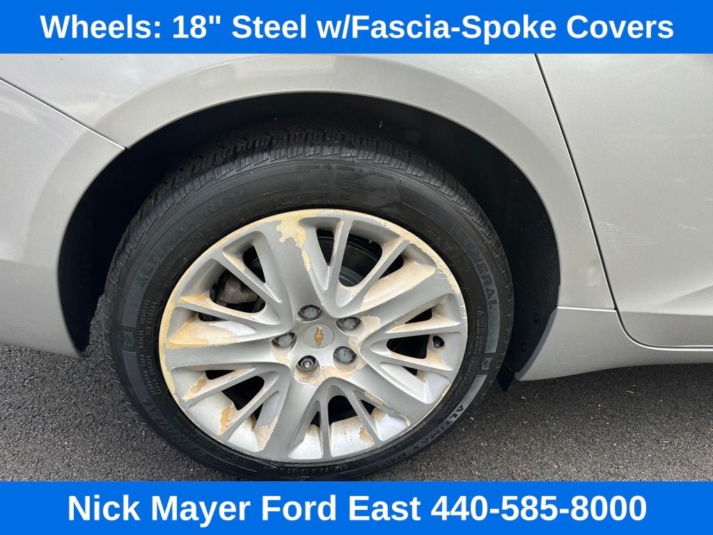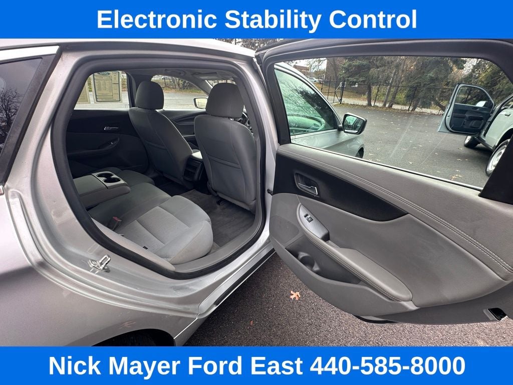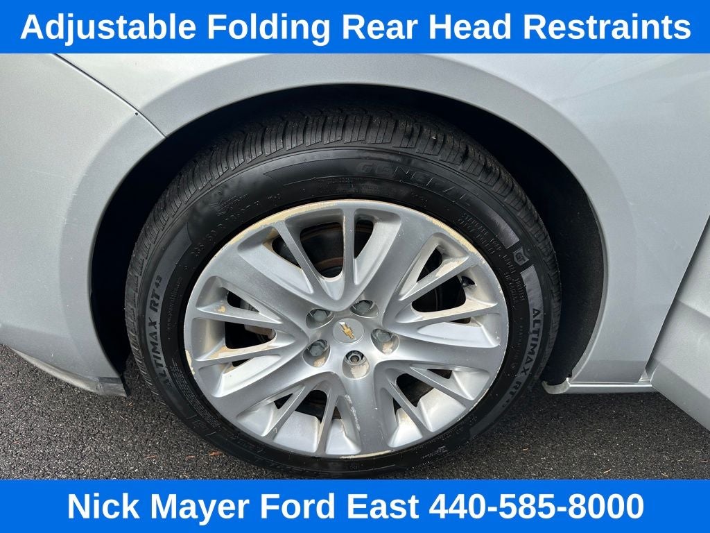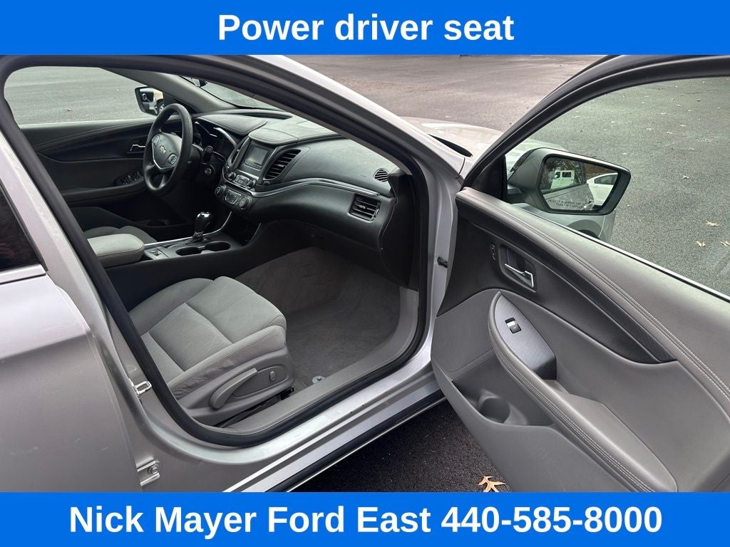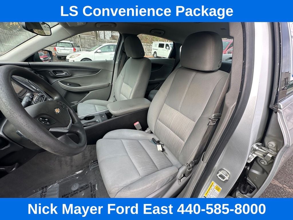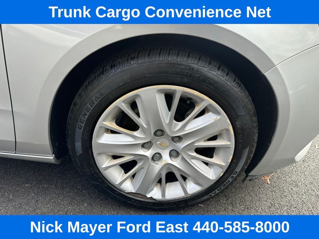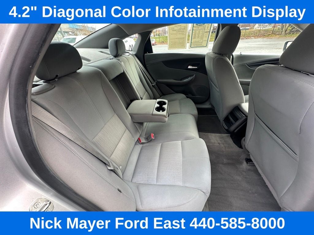 Nick Mayer Ford East Wickliffe is proud to offer this fantastic 2015 Chevrolet Impala in Silver Ice Metallic This vehicle has been thoroughly inspected, ready to take home, and comes with the following features; LS Convenience Package (Adjustable Folding Rear Head Restraints, Rear Park Assist, and Trunk Cargo Convenience Net), Preferred Equipment Group 1LS, 100-Watt 6-Speaker System, 4.2 Diagonal Color Infotainment Display, Air Conditioning, AM/FM Stereo w/CD Player, Brake assist, CD player, Electronic Stability Control, Power driver seat, Remote keyless entry, SiriusXM Satellite Radio, Speed-sensing steering, USB Port, Wheels: 18 Steel w/Fascia-Spoke Covers, 4-Way Manual Front Passenger Seat Adjuster, 4-Wheel Disc Brakes, 6 Speakers, 8-Way Power Driver Seat Adjuster, ABS brakes, AM/FM radio: SiriusXM, Bumpers: body-color, Delay-off headlights, Driver door bin, Driver Power Lumbar Seat Adjuster, Driver vanity mirror, Dual front impact airbags, Dual front side impact airbags, Emergency communication system: OnStar Directions & Connections, Four wheel independent suspension, Front anti-roll bar, Front Bucket Seats, Front Center Armrest, Front License Plate Bracket, Front reading lights, Fully automatic headlights, Illuminated entry, Knee airbag, Low tire pressure warning, Occupant sensing airbag, Overhead airbag, Overhead console, Panic alarm, Passenger door bin, Passenger vanity mirror, Power door mirrors, Power steering, Power windows, Premium Cloth Seat Trim, Radio data system, Rear anti-roll bar, Rear reading lights, Rear seat center armrest, Rear side impact airbag, Rear window defroster, Security system, Speed control, Split folding rear seat, Steering wheel mounted audio controls, Tachometer, Telescoping steering wheel, Tilt steering wheel, Traction control, Trip computer, and Variably intermittent wipers.