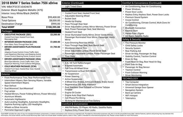 2018 BMW 7 Series 750i xDrive Black Sapphire Metallic