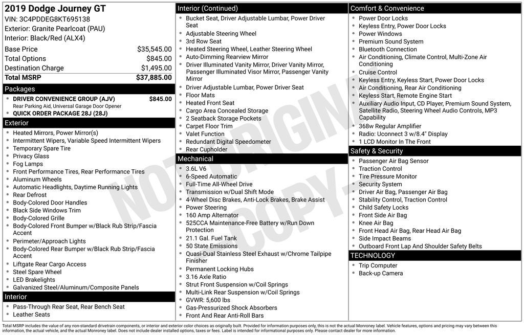 Discover the perfect balance of style, capability, and convenience with this 2019 Dodge Journey GT. This exceptional SUV is ready to elevate your driving experience and exceed your expectations.