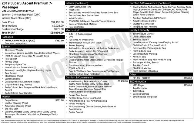 2019 Subaru Ascent Premium Crimson Red Pearl