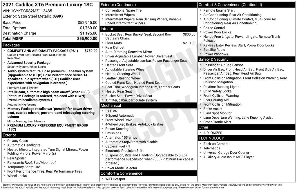 Air Ionizer, Automatic Emergency Braking, Bose Premium 8-Speaker Audio System, Comfort & Air Quality Package, Dual Driver Info Center Display Gauge Cluster, Front & Rear Park Assist, Heated Rear Outboard Seating Positions, Inside Rear-View Auto-Dimming Mirror, Premium Luxury Package 1SC, Teen Driver, Ventilated Driver & Front Passenger Seats.