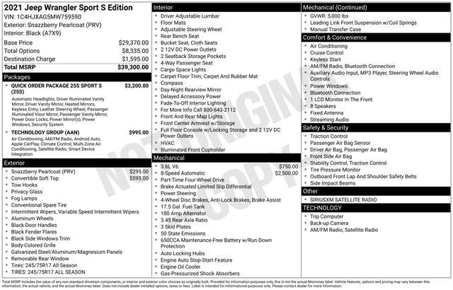 2021 Jeep Wrangler Sport S