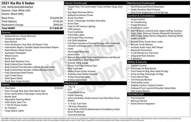 Experience the joy of owning a well-equipped and reliable compact sedan. Schedule a test drive today and discover why the 2021 Kia Rio S is the perfect choice for your next vehicle.