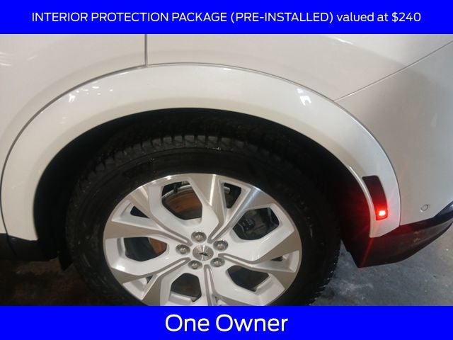 The Ice White Appearance Package adds a stunning visual flair, with a star white metallic tri-coat exterior, unique Oxford white front door badging, and gloss white dashboard insert. The Interior Protection Package ensures your Mustang Mach-E stays looking its best, with front and rear floor liners and a cargo area protector.