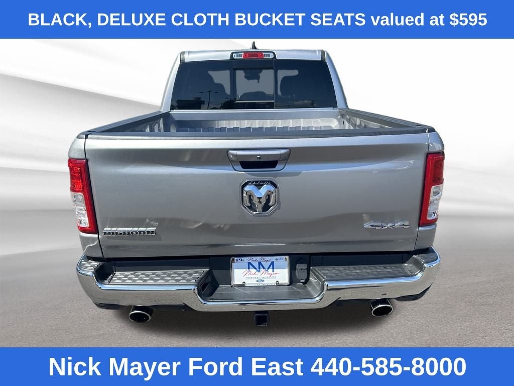 Nick Mayer Ford East Wickliffe is proud to offer this good-looking 2022 Ram 1500 in Billet Silver Metallic Clearcoat This vehicle has been thoroughly inspected, ready to take home, and comes with the following features; Big Horn Level 2 Equipment Group (115V Auxiliary Power Outlet, 115V Auxiliary Rear Power Outlet, 2nd Row In Floor Storage Bins, 400W Inverter, 4G LTE Wi-Fi Hot Spot, 8.4 Touchscreen Display, Air Conditioning ATC w/Dual Zone Control, Apple CarPlay, Auto-Dimming Exterior Driver Mirror, Auto-Dimming Rear-View Mirror, Black Exterior Mirrors, Black Premium Power Mirrors, Bluetooth® Handsfree Phone & Audio, Class IV Receiver Hitch, Cluster 7.0 TFT Color Display, Connectivity - US/Canada, Convex Wide-Angle Mirror Insert, Exterior Mirrors Courtesy Lamps, Exterior Mirrors w/Heating Element, Exterior Mirrors w/Supplemental Signals, For Details, Visit DriveUconnect.com, Global Telematics Box Module (TBM), Glove Box Lamp, Google Android Auto, GPS Antenna Input, Heated Front Seats, Heated Steering Wheel, Integrated Center Stack Radio, Media Hub w/2 Charge Only USBs, ParkSense Front/Rear Park Assist w/Stop, Power 2-Way Driver Lumbar Adjust, Power 8-Way Driver Seat, Power Adjustable Pedals, Power-Folding Mirrors, Radio: Uconnect 5 W w/8.4 Display, Rear Dome w/On/Off Switch Lamp, Rear Power Sliding Window, Rear Window Defroster, Remote Start System, Security Alarm, SiriusXM Radio Service, SiriusXM Satellite Radio, Sun Visors w/Illuminated Vanity Mirrors, Universal Garage Door Opener, and USB Host Flip), Quick Order Package 25Z Big Horn (Big Horn Badge), Ford Blue Advantage: Blue Certified Certified, 3.92 Rear Axle Ratio, 48V Belt Starter Generator, Alloy wheels, Bucket Seats, ParkView Rear Back-Up Camera, Rear step bumper, Wheels: 20 x 9 Aluminum Chrome Clad (WRK), 3 Rear Seat Head Restraints, 4 Way Front Headrests, 4-Wheel Disc Brakes, 6 Speakers, ABS brakes, Air Conditioning, AM/FM radio, Brake assist, Bumpers: chrome, Compass, Delay-off headlights, Driver door bin, Dual front impact airbags, Dual front side impact airbags, Electronic Stability Control, Emergency communication system: SiriusXM Guardian, Front anti-roll bar, Front Center Armrest w/Storage, Front fog lights, Front License Plate Bracket, Front reading lights, Front Seat Back Map Pockets, Front wheel independent suspension, Fully automatic headlights, Heated door mirrors, Illuminated entry, Integrated Voice Command w/Bluetooth®, Leather steering wheel, Low tire pressure warning, MOPAR Front & Rear Rubber Floor Mats, Occupant sensing airbag, Outside temperature display, Overhead airbag, Overhead console, Panic alarm, Passenger door bin, Passenger vanity mirror, Power door mirrors, Power steering, Power windows, Radio data system, Rear 60/40 Folding Seat, Rear anti-roll bar, Rear seat center armrest, Remote keyless entry, Speed control, Split folding rear seat, Steering wheel mounted audio controls, Tachometer, Telescoping steering wheel, Tilt steering wheel, Traction control, Trip computer, Variably intermittent wipers, and VoltmeteR.