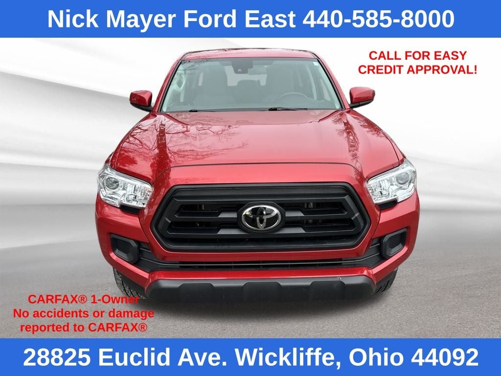 Nick Mayer Ford East Wickliffe is proud to offer this rock solid, reliable 2022 Toyota Tacoma in Barcelona Red Metallic This vehicle has been thoroughly inspected, ready to take home, and comes with the following features; ABS brakes, Active Cruise Control, Electronic Stability Control, Illuminated entry, Low tire pressure warning, Remote keyless entry, Traction control, 6 Speakers, Air Conditioning, AM/FM radio: SiriusXM, Anti-whiplash front head restraints, Apple CarPlay/Android Auto, Auto High-beam Headlights, Axle Ratio: 4.30, Bar Gray Ring Chrome Front Grille, Brake assist, Bumpers: body-color, Chrome Rear Bumper, Daytime Running Lamps, Driver door bin, Dual front impact airbags, Dual front side impact airbags, Emergency communication system: Safety Connect with 1-year trial, Exterior Parking Camera Rear, Fabric Seat Trim (FC), Front anti-roll bar, Front Bucket Seats, Front Center Armrest, Front Fog Lamps, Front fog lights, Front reading lights, Front Seats, Front wheel independent suspension, Knee airbag, Occupant sensing airbag, Outside temperature display, Overhead airbag, Overhead console, Panic alarm, Passenger door bin, Power door mirrors, Power steering, Power windows, Radio: AM/FM Radio, Rear step bumper, Remote Keyless Entry System, Speed control, Speed-sensing steering, Split folding rear seat, Steering wheel mounted audio controls, Tachometer, Telescoping steering wheel, Tilt steering wheel, Trip computer, Variably intermittent wipers, and Wheels: 16 x 7J Style Steel Disc.