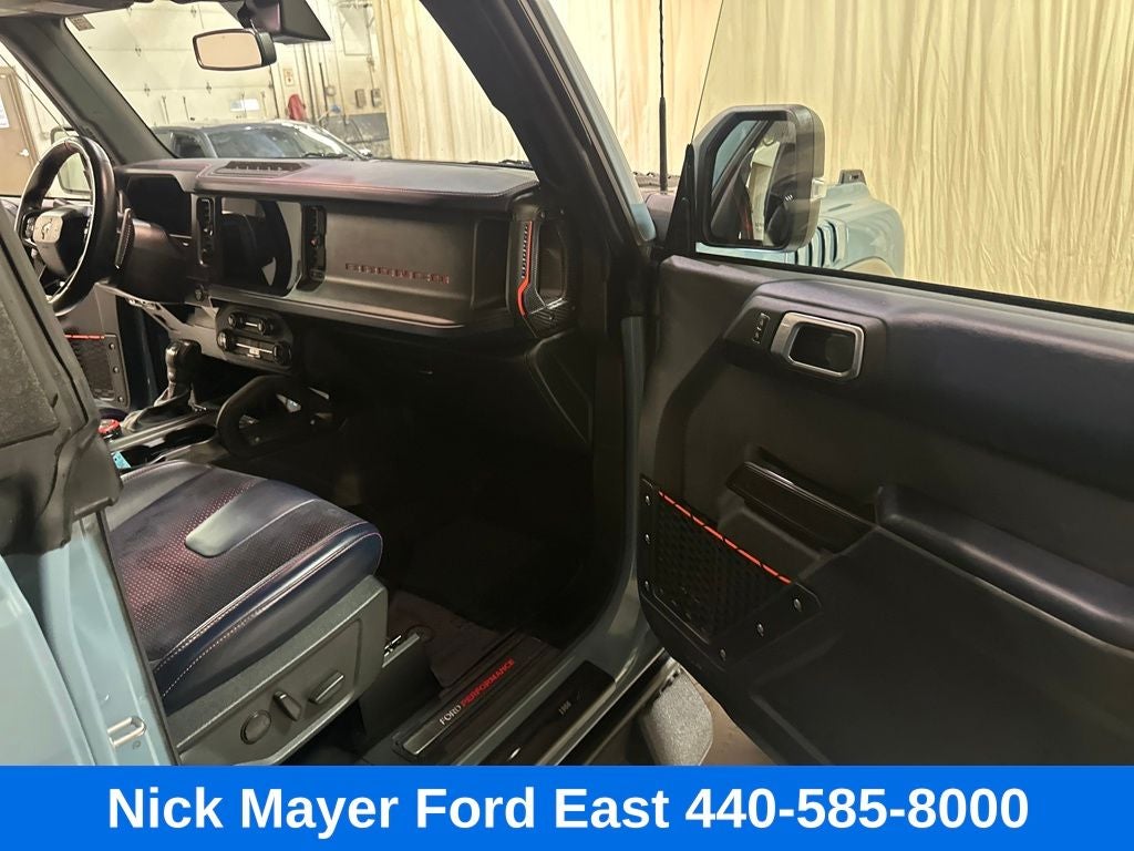 Nick Mayer Ford East Wickliffe is proud to offer this superb 2023 Ford Bronco in Area 51 This vehicle has been thoroughly inspected, ready to take home, and comes with the following features; Equipment Group 374A Lux Package, Lux Package (10 Speakers w/Subwoofer, 2 Smart Charging USB Ports In Dashboard, Adaptive Cruise Control, Connected Built-In Navigation, Evasive Steering Assist, Heated Steering Wheel, Radio: B&O Sound System by Bang & Olufsen, Universal Garage Door Opener, and Wireless Charging Pad), 4-Wheel Disc Brakes, 4.7 Axle Ratio, 7 Speakers, ABS brakes, Air Conditioning, Alloy wheels, AM/FM radio: SiriusXM with 360L, AM/FM Stereo, Auto High-beam Headlights, Auto-dimming Rear-View mirror, Automatic temperature control, Brake assist, Compass, Connected Navigation, Convertible HardTop, Convertible roof lining, Delay-off headlights, Driver door bin, Driver vanity mirror, Dual front impact airbags, Dual front side impact airbags, Electronic Stability Control, Emergency communication system: 911 Assist, Exterior Parking Camera Rear, Front anti-roll bar, Front Bucket Seats, Front Center Armrest, Front dual zone A/C, Front fog lights, Front reading lights, Front wheel independent suspension, Fully automatic headlights, Glass rear window, Hard Top Sound Deadening Headliner (DISC), Heated door mirrors, Heated front seats, Illuminated entry, Integrated roll-over protection, Interior Carbon Fiber Pack 6, Keyless Entry Keypad, Leather Shift Knob, Low tire pressure warning, Marine Grade Vinyl Bucket Seats, Navigation system: Connected Navigation, Occupant sensing airbag, Outside temperature display, Overhead airbag, Overhead console, Panic alarm, Passenger door bin, Passenger vanity mirror, Power door mirrors, Power steering, Power windows, Radio data system, Rear anti-roll bar, Rear seat center armrest, Rear window defroster, Rear window wiper, Remote keyless entry, Security system, SiriusXM Radio w/360L, Speed control, Split folding rear seat, Steering wheel mounted audio controls, SYNC 4, Tachometer, Telescoping steering wheel, Tilt steering wheel, Traction control, Trip computer, Turn signal indicator mirrors, Upgraded Raptor Graphic, Variably intermittent wipers, Voltmeter, Wheels: 17 Black High Gloss-Painted Aluminum, and Wheels: 17 Dark Carbonized Gray Alloy Painted.