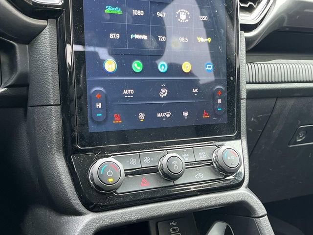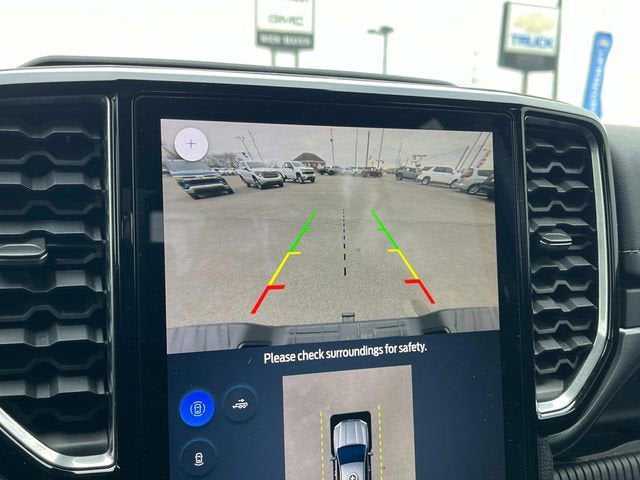 The interior of the Ranger Lariat is a true sanctuary, with heated leather-trimmed front seats, a heated steering wheel, and dual-zone automatic climate control. The tray-style floor liner and off-road screen in the center stack further enhance the vehicle's rugged yet refined character.
